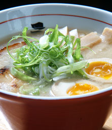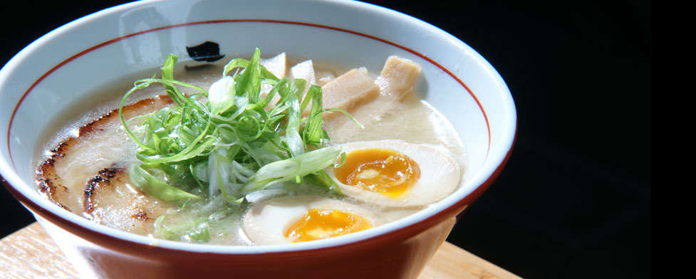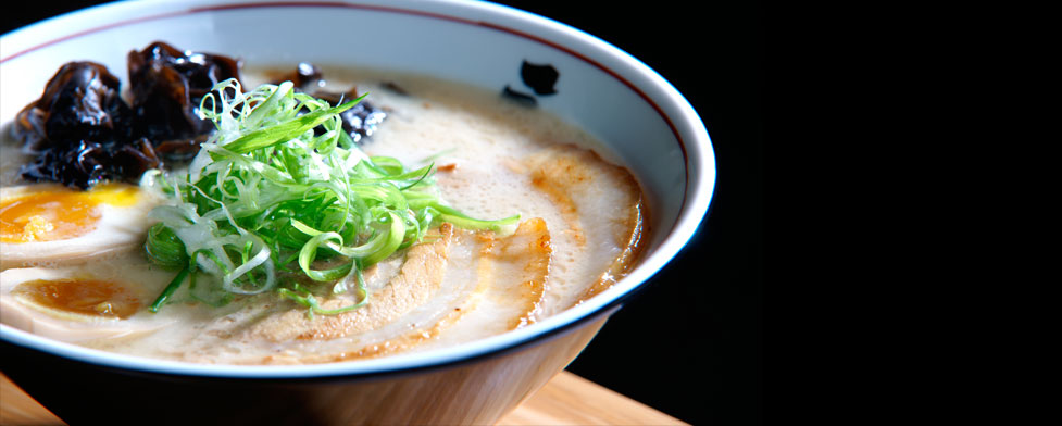 Tonkotsu RamenSansotei signature dish, silky and creamy tonkotsu broth topped with sliced pork belly, black fungus, marinated soft boiled egg and green onion.